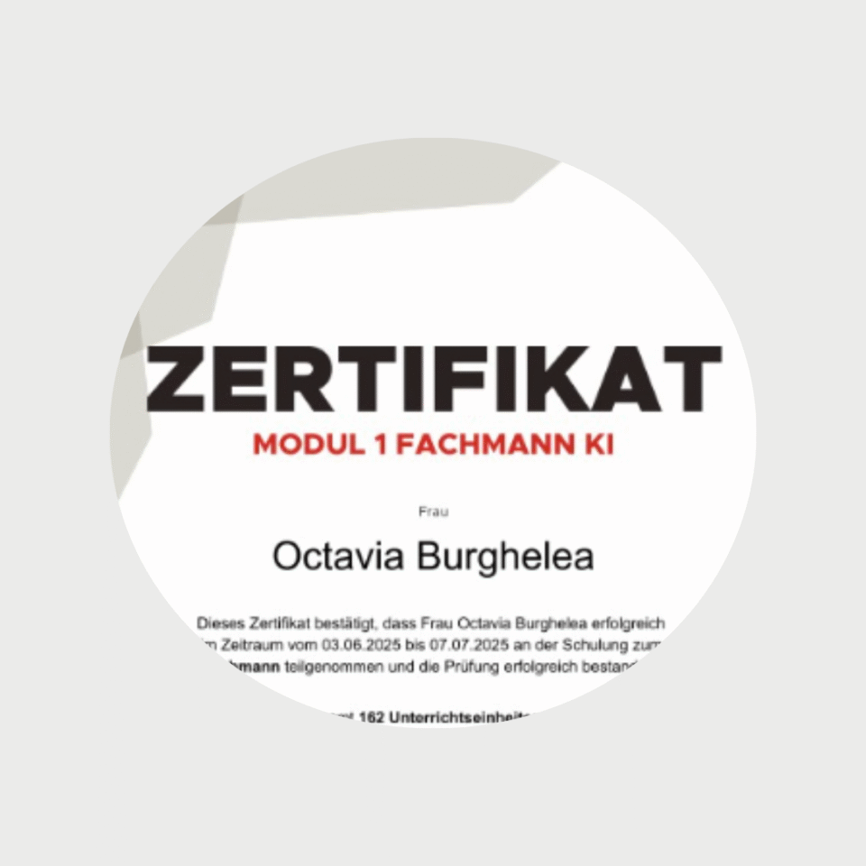 Octavia ist Spezialistin für digitales Marketing mit einem Schwerpunkt auf Webdesign, Webentwicklung und Videoschnitt. Sie verbindet Gestaltung mit Umsetzung. Ihr Interesse gilt besonders klaren Websites, durchdachten Inhalten und Lösungen, die funktionieren. Am liebsten arbeitet sie dort, wo visuelles Erzählen und Nutzerführung zusammenkommen.