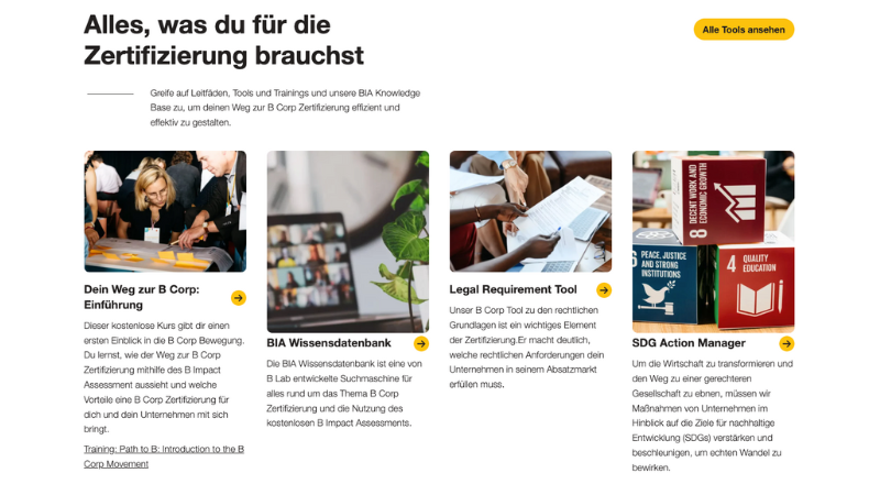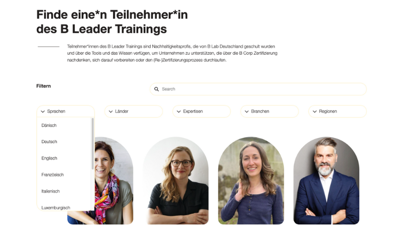 B Lab Germany launched its website months ahead of other country partners. The team now has a bilingual website that clearly communicates their mission and provides guidance to companies on their B Corp Certification journey. Thanks to the taxonomy and filtering setup, users can quickly find the information they need.