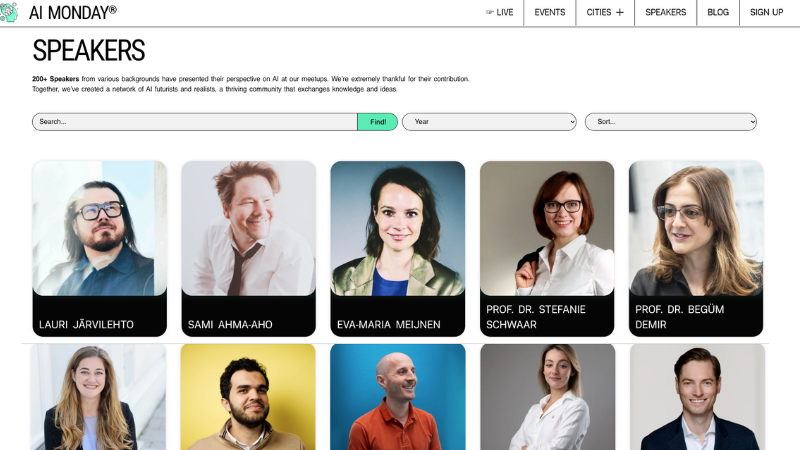 We rebranded AI Monday with a fresh, vibrant design that captures the energy and innovation of the AI sector. Alongside the rebrand, we built a custom event platform that allowed attendees to register through the website and access an archive of all past events, speakers, and presentation materials. The platform supported live streaming for real-time participation. We incorporated personalised email funnels, set up through a custom CRM and ActiveCampaign, based on event type, language, and time zone to increase engagement. Additionally, we migrated 200 speaker profiles and completed the onboarding of organisers, enabling them to manage their events independently.