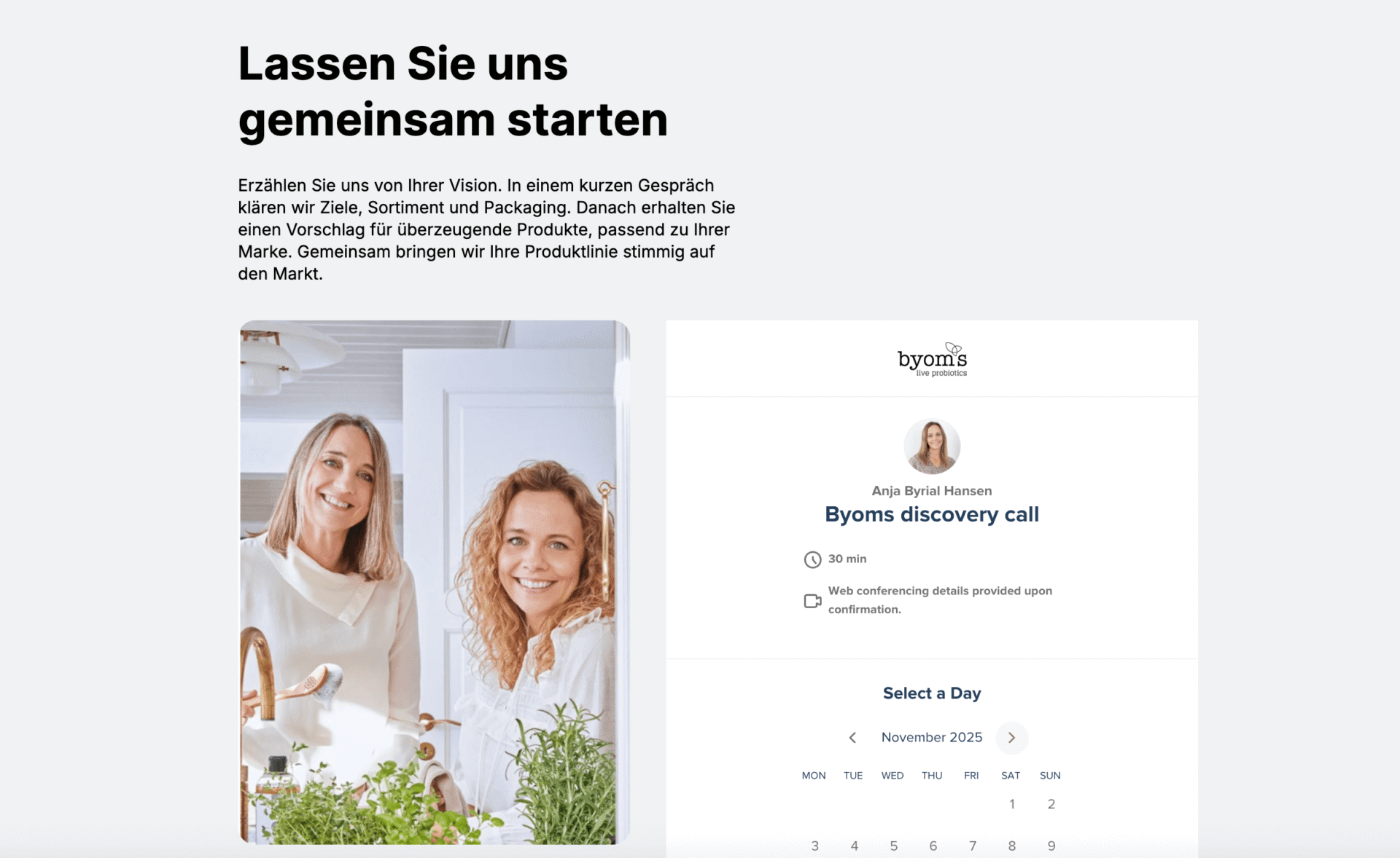 To support these conversations, we developed a dedicated bilingual landing page (English and German) for Byoms’ white label offering, complete with an integrated Calendly booking tool to simplify meeting scheduling and partner engagement.