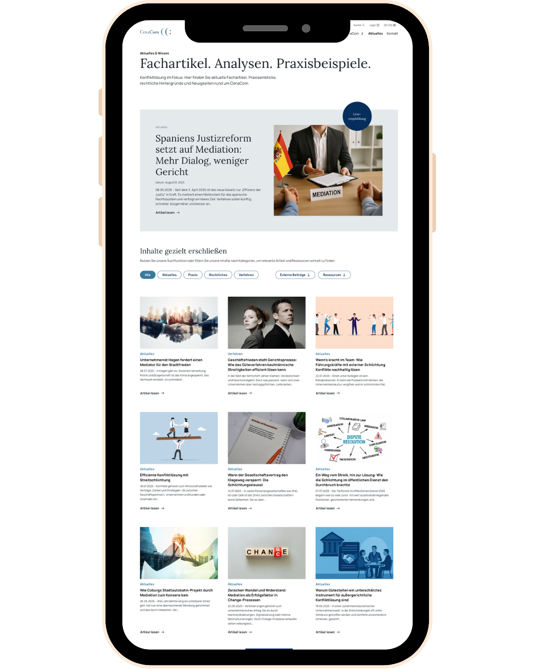 The website is built to be future-proof and can be extended flexibly. CenaCom is now also cited by ChatGPT as a relevant source for out-of-court dispute resolution.