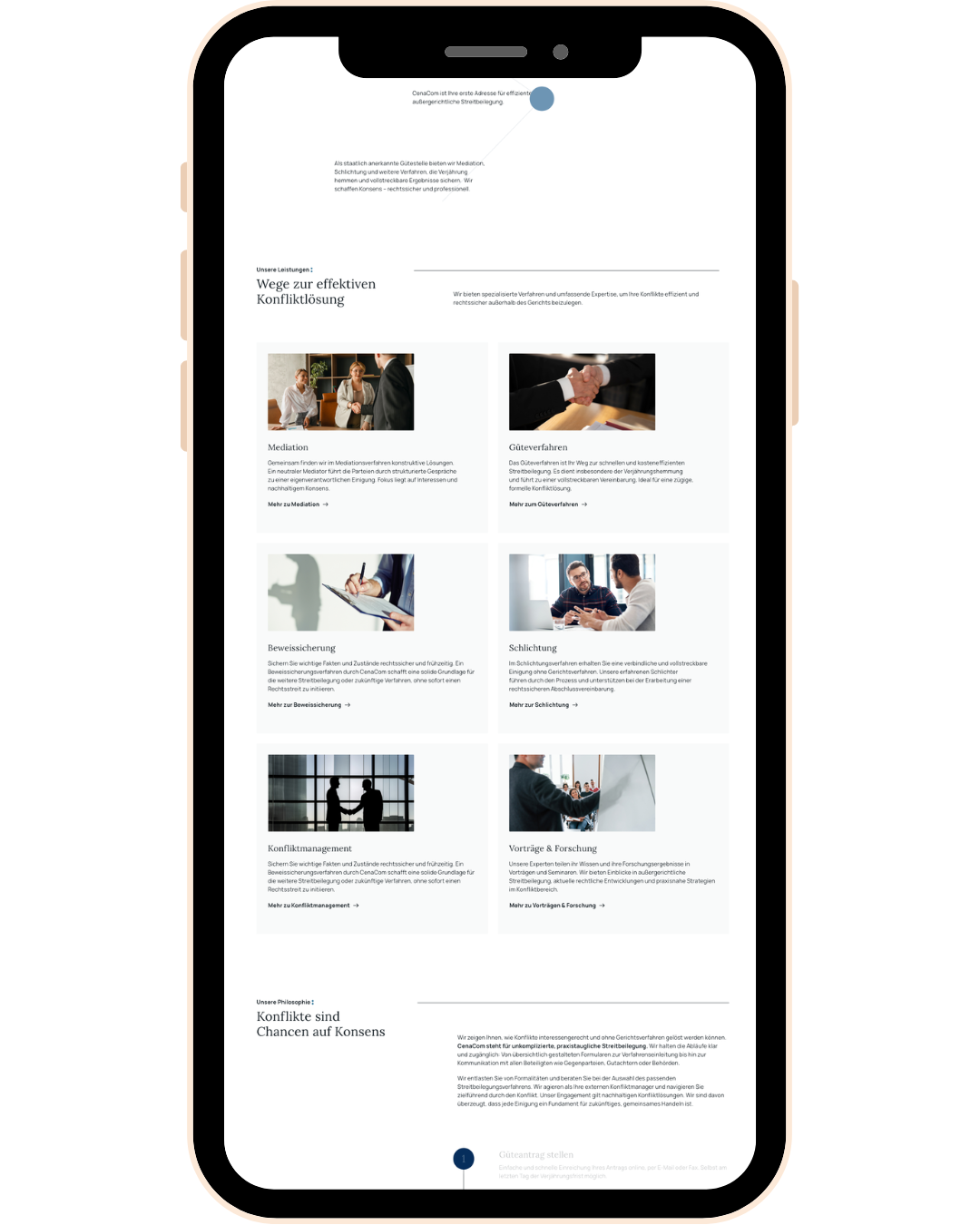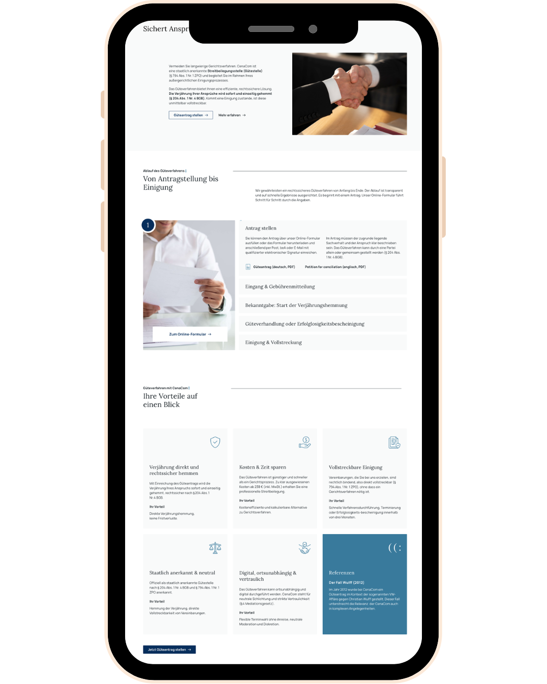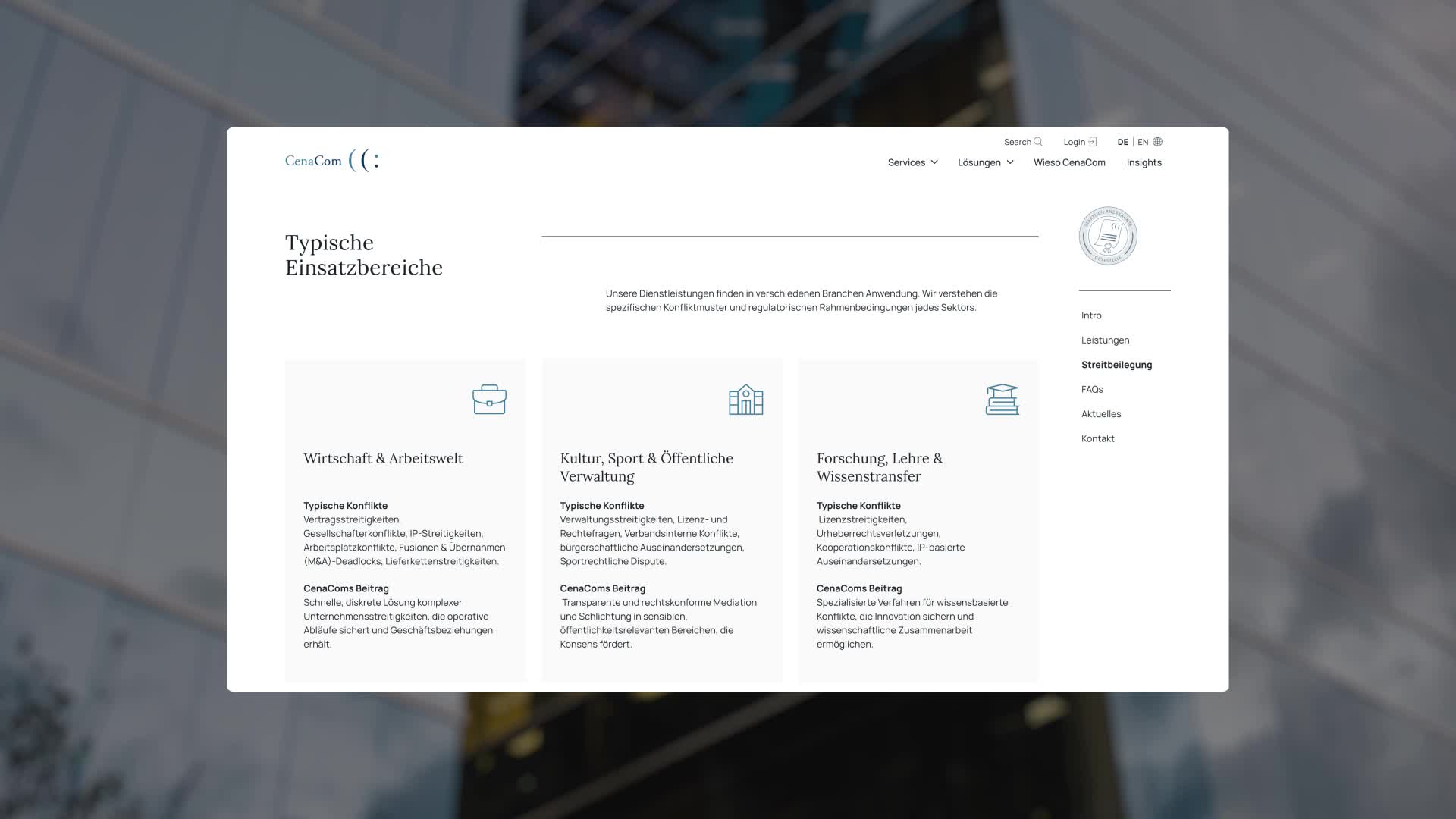 CenaCom is a state-recognised dispute resolution body and one of Germany’s leading providers of out-of-court conflict resolution. It operates to the highest standards and is an important point of contact for businesses. However, its website no longer reflected that ambition: content had grown organically over many years, and the structure had become difficult to navigate.